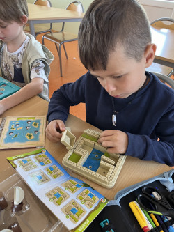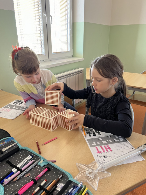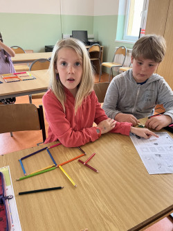 Se šikovnými prvňáčky jsme se letos vydali objevovat krásy matematiky. Mimo jiného jsme si zkusili udělat stavby z kostek, správně je zapsat a potom společně diskutovat o možných řešeních při přesunu jedné či více kostek. Dále jsme řešili různé logické hry a rozvíjeli svoji prostorovou představivost. V některých hodinách jsme se inspirovali i metodami Hejného matematiky a učili se pracovat s číslem jako vyjádřením pořadí. Velmi nás všechny bavilo hrát si na obchod a řešit, jakými variantami mincí můžeme platit. Po hodinách matematiky+ už víme, že číslo nevyjadřuje pouze počet, ale také pořadí, že pomocí čísel můžeme zapsat i proběhlé změny a hlavně, že máme úlohy, které mají více řešení.