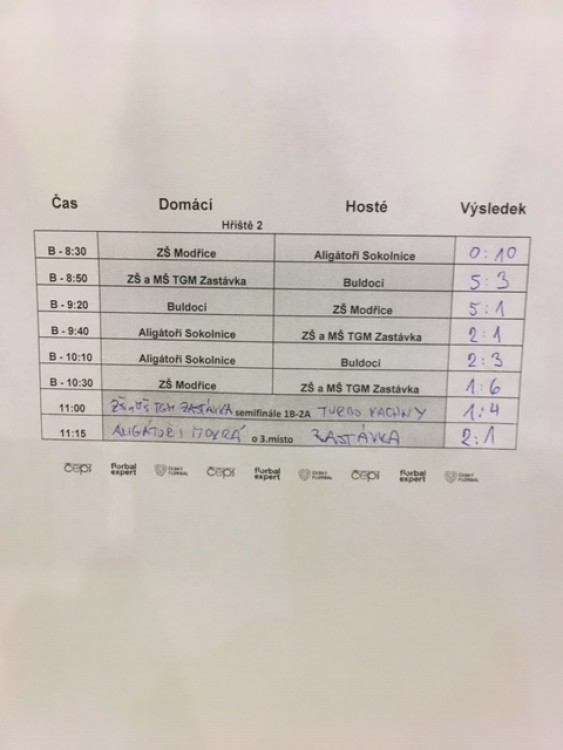 Ve čtvrtek 21. listopadu jsme se zúčastnili florbalového turnaje v nové hale Tatranu Bohunice. Turnaje se zúčastnili žáci pátých tříd, jmenovitě z V.A Václav Doležel, Antonín Chadraba, Tomáš Jahoda, Jakub Přibyl, Samuel Strnad, Gabriel Zápeca a z V.B Matyáš Zeman a Matyáš Elbl. Kluci bojovali s plným nasazením, ale proti ostatním zkušeným týmům měli jen malé šance.