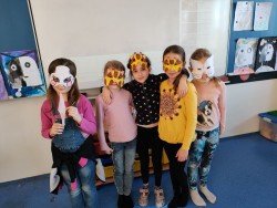 Úterní školní den jsme si zpříjemnili masopustním veselím. Děti během přestávek hledaly a plnily úkoly po škole. Na chodbách bylo rušno a veselo.