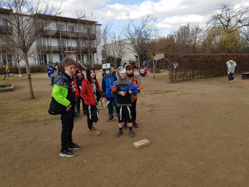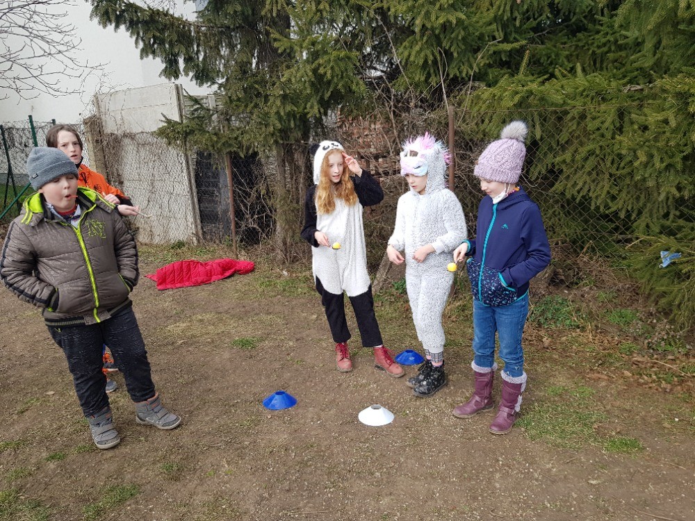 Třídy 5.A a 5.B se zapojily do masopustních oslav a připravily stanoviště na zahradě pro mladší spolužáky. Úkoly byly zajímavé a pro děti zábavné. Na zahradě se sešlo 12 různých stanovišť, kde si děti mohly vyzkoušet všelijaké úkoly. Páťáci si vše zvládli nachystat a zorganizovat. Nezapomněli ani na sladkou odměnu, která měla velký úspěch. Tímto děkujeme všem zapojeným vyučujícím, dětem i jejich rodičům za příjemné zpestření výuky.