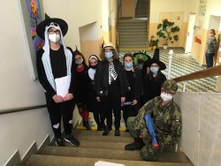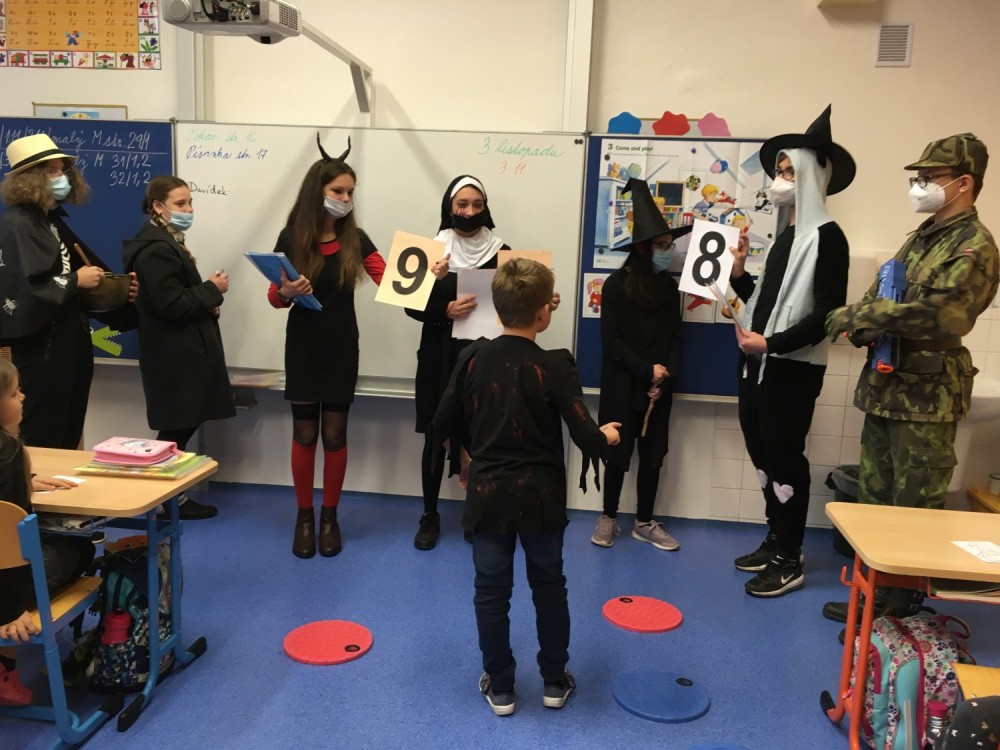 Ve čtvrtek 4.11. proběhla na naší škole halloweenská přehlídka kostýmů. Některé děti nás ve svých kostýmech pořádně postrašily. Také jsme si zatancovali a vysvětlili jsme si co to vlastně školní parlament znamená. Všem dětem i paním učitelkám děkujeme za účast.
