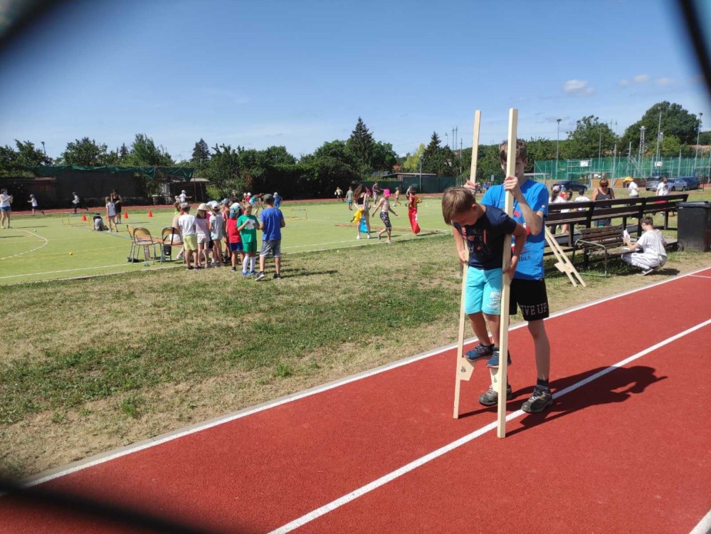 Na závěr školního roku jsme požádali naše nejstarší spolužáky, zda by nám nepomohli s organizací sportovního dne pro 1. stupeň. Kývli - to asi ještě netušili, o jaký dav dětí se budou muset postarat :-). O to větší DÍKY jim teď posíláme společně s fotkami. Moc si ceníme jejich zapálení a výdrže během celé akce v ukázkovém letním horku.