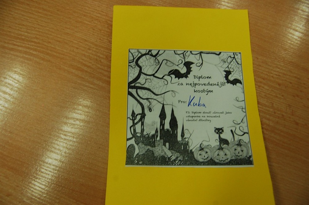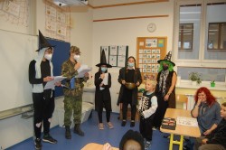 4. 11. 2021 Dnes jsme si připomněli Halloween. Děti mohly přijít v kostýmu a žáci 2. stupně - vybraní zástupci parlamentu, který tuto aktivitu připravil, přišli, aby kostýmy obodovali. Výherci dostali pozvánku na vánoční dílničky s žáky 2.stupně. 10 / 11 / 2021 JS