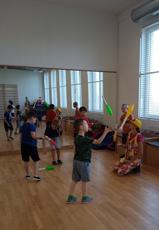 Při výukovém programu Dovádění s klauny SVČ Ivančice jsme se moc bavili a vyzkoušeli si třeba to, že žonglování není jednoduché. Rozdělili jsme se na skupiny a vystřídali jsme se na několika stanovištích. Také jsme si mohli nechat namalovat na ruku nějaký hezký obrázek.