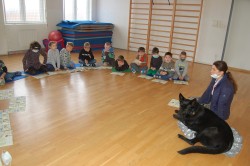 Ve výukovém programu jsme se seznámili s tím, jaké nebezpečné situace mohou nastat při setkání se psem nebo i doma s vlastním psem. A protože jsme byli hodní a pozorně jsme poslouchali, tak jsme si na závěr mohli pejska i pohladit.