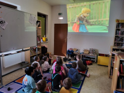 Zaposlouchali se také do básně Kuřátko a obilí od František Hrubín. Po zhlédnutí ukázek z pohádek Krtek a oslava a Krtek a vejce si povídali o rozdílech mezi těmito ukázkami.