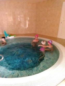 Jednou za tři týdny se vydáváme do wellness centra Hastrmánci, abychom se naučili základům plavání. Hodiny jsou pestré, používáme pěkné pomůcky. Aby toho na nás zpočátku nebylo moc, máme možnost relaxovat i ve vířivce...