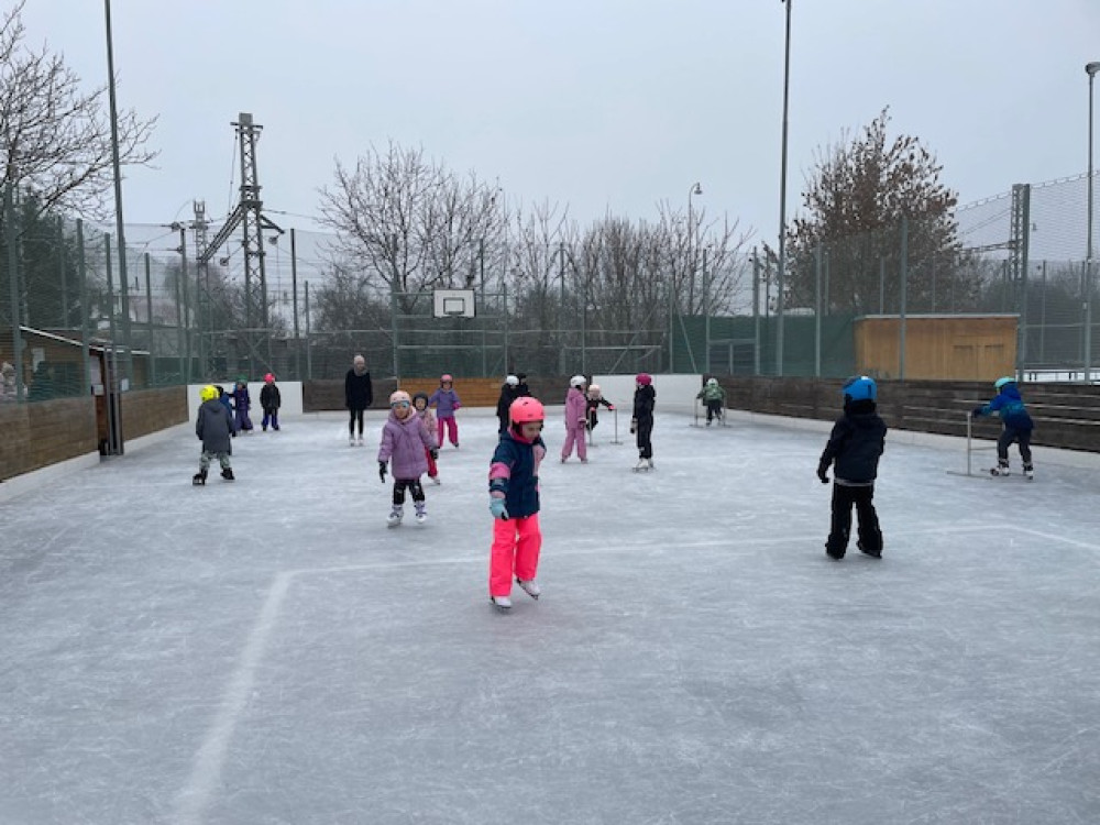 Lednové mrazivé počasí jsme s prvňáčky využili a navštívili místní ledovou plochu. Někteří stáli na bruslích zpočátku nejistě, ale za hodinu na ledě už všichni jezdili jako draci. Zkušenější děti si své dovednosti zdokonalovaly - učily se zatáčet, překládat a další cviky na udržení rovnováhy a jistoty na ledu. Spousta rodičů přišla pomoci s nazouváním a zavazováním bruslí a někteří se i aktivně zapojili do výuky, díky čemuž si to všichni užili a spoustu se toho naučili. Děkujeme.