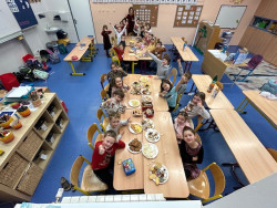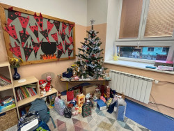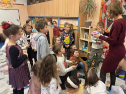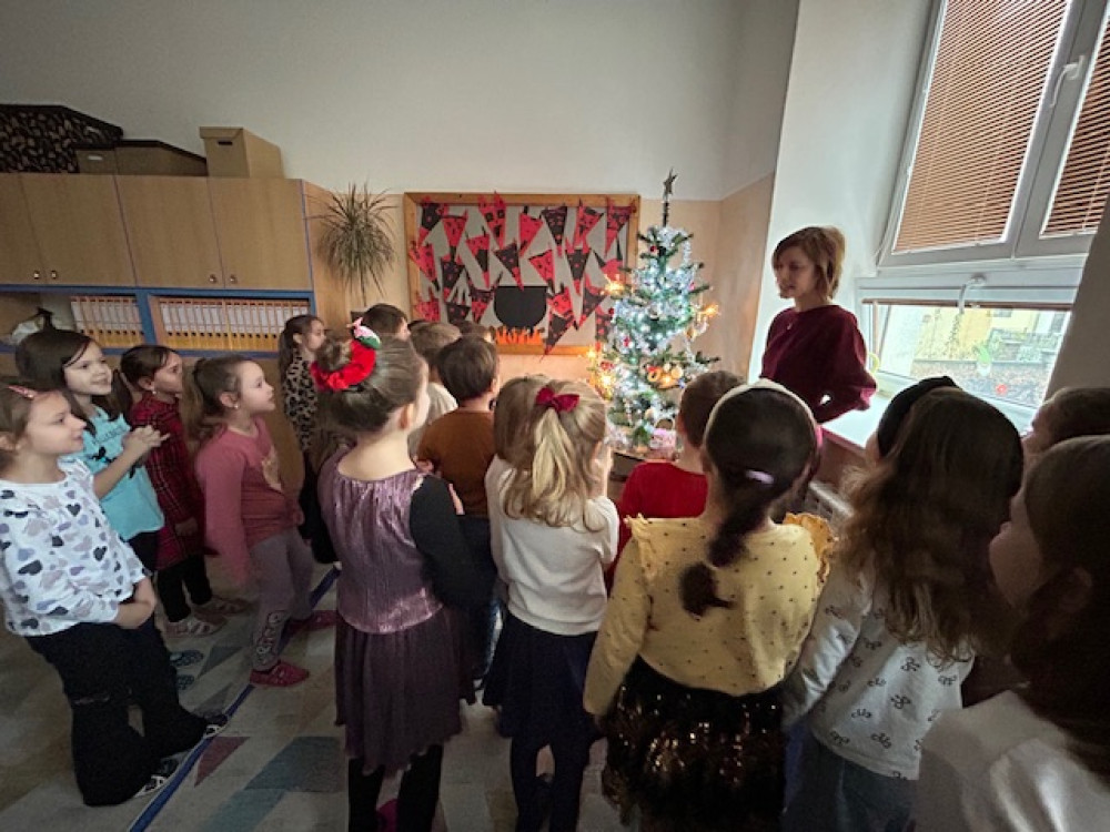 Poslední školní den před Vánocemi jsme si v naší třídě udělali opravdu štědrý. Ná začátku děti vyrobily krásná vánoční přání a poté jsme začali chystat slavnostní tabuli - sešlo se spousta jídla (nechybělo cukroví, ovoce, slané dobroty,...) i pití a děti hodovaly prakticky celé dopoledne a později i v družině... Po občertvení jsme konečně přešli k vytouženému stromečku obloženému dárky. Zazpívali jsme koledu, zapálili prskavky (pod hasičským dohledem) a mohlo se nadělovat. Všichni nadšeně rozbalovali dárečky, ze kterých měli velkou radost. Pod stromečkem našli i nové hry, na které si vydělali prodejem svých výrobků na jarmarku. Do konce vyučování si už jen chvilku pohráli a hurá na vánoční prázdniny:-)...
