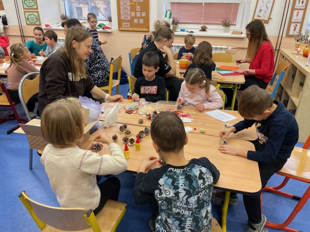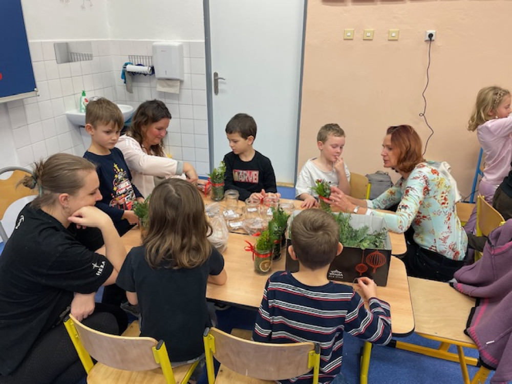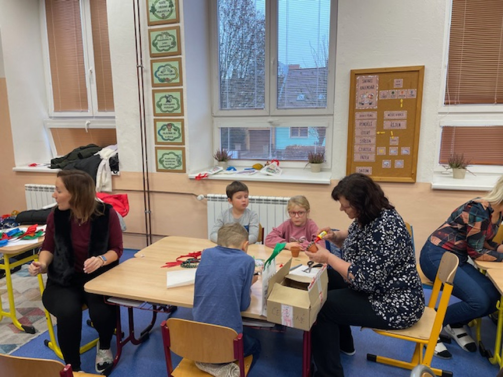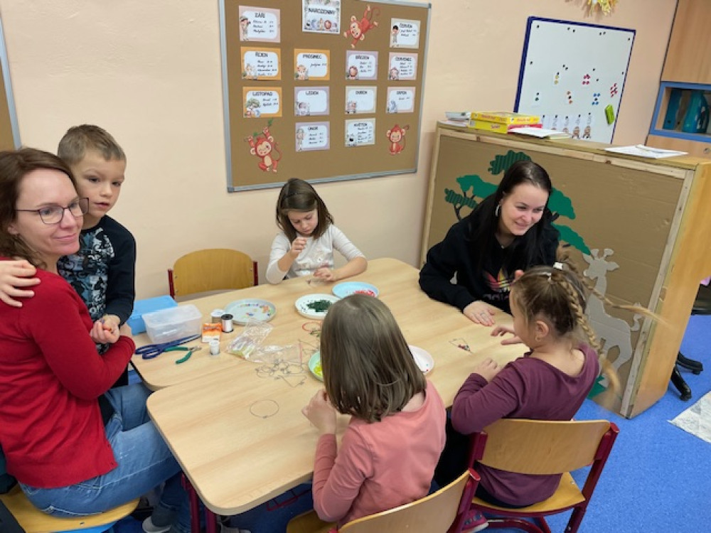 Na akci přišla spousta rodičů i prarodičů a celé dopoledne tak proběhlo ve znamení vánočního tvoření. Spousta maminek, ale i babiček si perfektně nachystaly stanoviště, kde spolu s ostatními pomáhaly dětem s výrobou drátěných korálkových ozdobiček, stromečků a andílků ze šišek, vánočních přání, svíček, zvonečků nebo vánočních skleniček.