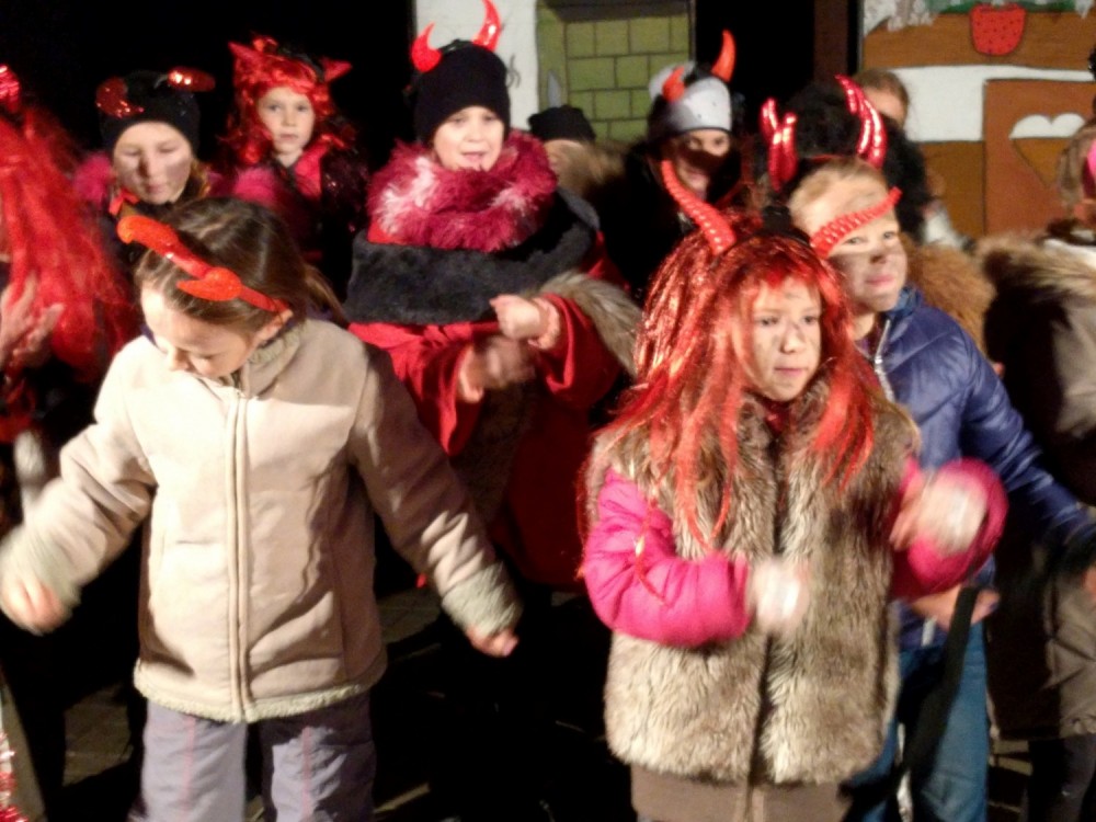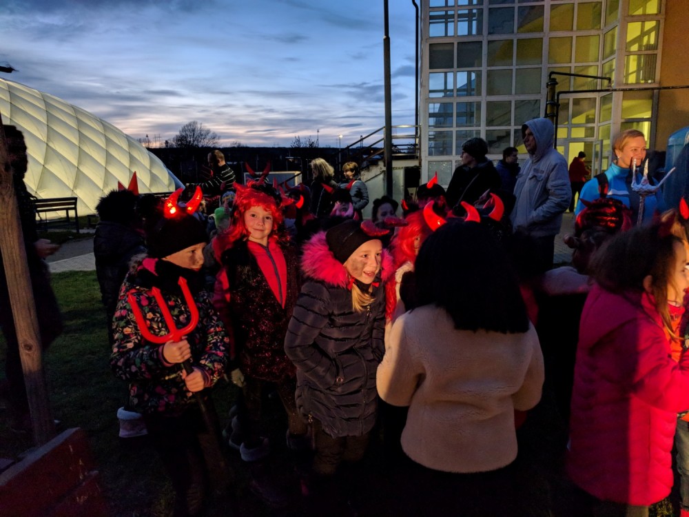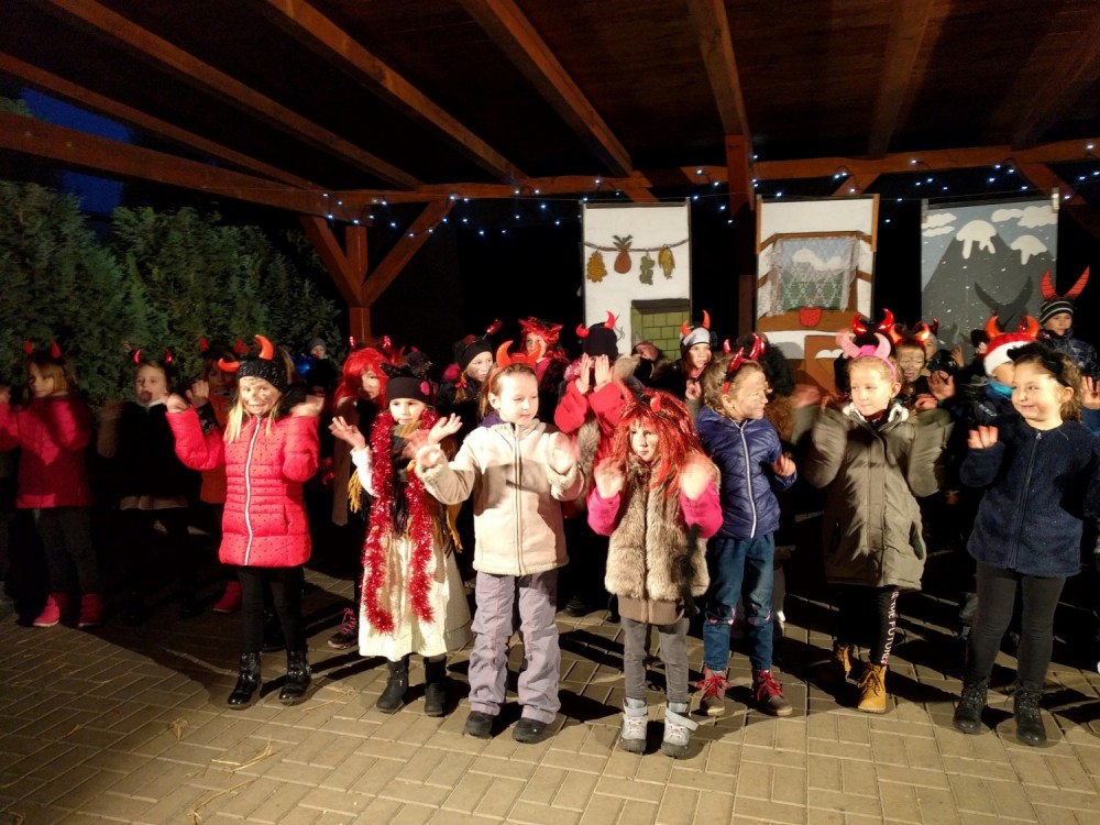 29. 11. 2019 My jsme malí čertíci,za chatrčí spíme,my se vůbec ničeho,my se nebojíme... Představení se nám vydařilo, protože jsme se všichni hodně snažili. A masky čertíků nám hodně slušely... 1 / 12 / 2019 PK