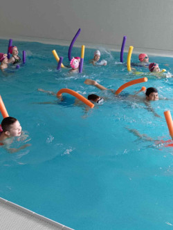 2. 5. 2025 Trochu učení, ještě trochu více skákání a nejvíce radosti z vody si užili žáci 1.A v bazénu. V čepici nebo s namočenou hlavou - těžko se pozná, kdo je právě ve vodě. Poznáte nás? 2 / 5 / 2025 MaHe