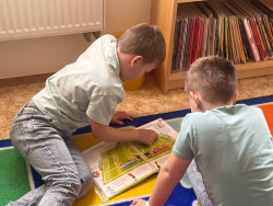 V úterý jsme navštívili modřickou knihovnu, abychom si povídali, jak je to vlastně s pohádkami. Jednu nám paní knihovnice také pustila - bylo v ní všechno popletené. Také nám jednu pěknou přečetla - recyklovanou. Hledali jsme znaky pohádek - ty jsme u obou našli. A v obou pohádkách také všechno dobře dopadlo - a tak je to v pořádku.