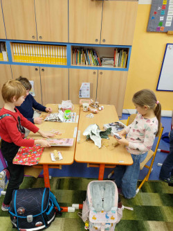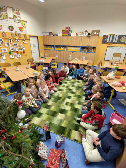 Děti si společně zazpívaly vánoční koledy. Velké očekávání nastalo, když čekaly na svou hvězdičku v jablku. Spolu s hvězdičkou vyslovily přání naší třídě. Následná radost z darováni a obdarování druhého byla! Pod stromečkem se objevilo spousta dárků. Nakonec přišlo i na mlsání a ochutnávání nádherného cukroví.