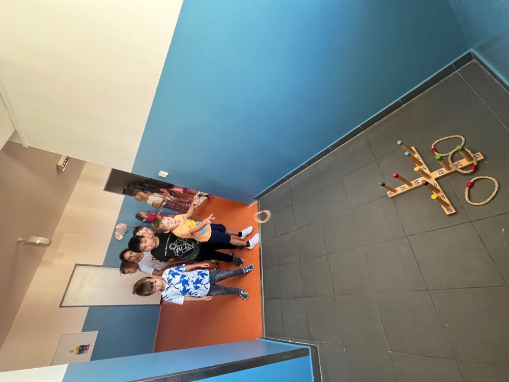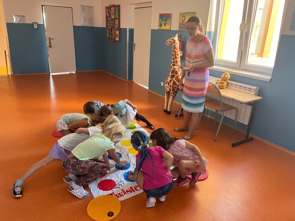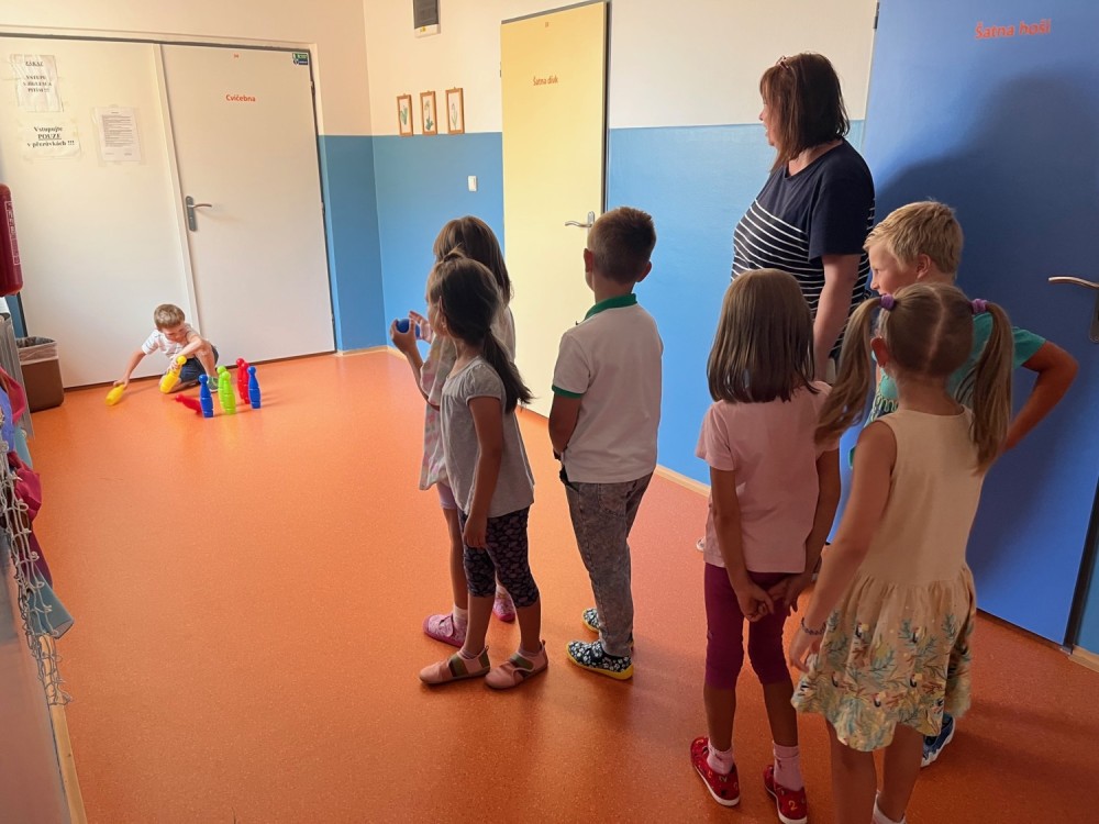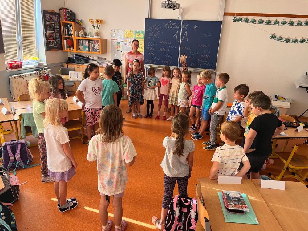 Dnes jsme zažili dopolední vyučování trochu jinak. Seznámili jsme se s paní psycholožkou, která nám připravila spoustu aktivit. Nejprve jsem se snažili oslovovat spolužáky jménem v kroužku při házecí hře, pak jsme si připomněli pravidla třídy. Ta jsme stvrdili svým "podpisem" - vytvořili jsme vlajku složenou z obtisků našich rukou. Také jsme si zatančili a při tom poznávali a zjišťovali něco nového o kamarádech. Abychom poznali lépe i školní budovu, měli jsme za úkol najít v každém patře ztracenou blešku. Na závěr nechyběly ani hry v družstvech na chodbě.