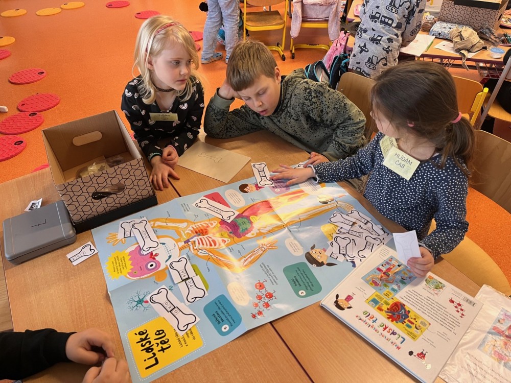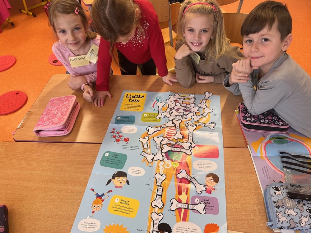 Tentokrát jsme propojili centra aktivit s prvoučným učivem o lidském těle. V pěti centrech jsme prozkoumali smysly, kosti, části lidského těla, v centru matematiky jsme měřili, počítali a porovnávali a v centru psaní luštili a psali věty k tématu. Práce se nám dařila, objevili jsme mnoho nového. Už se těšíme na únorová centra!