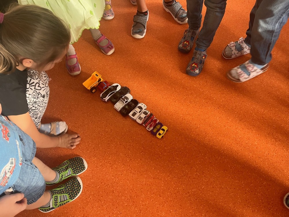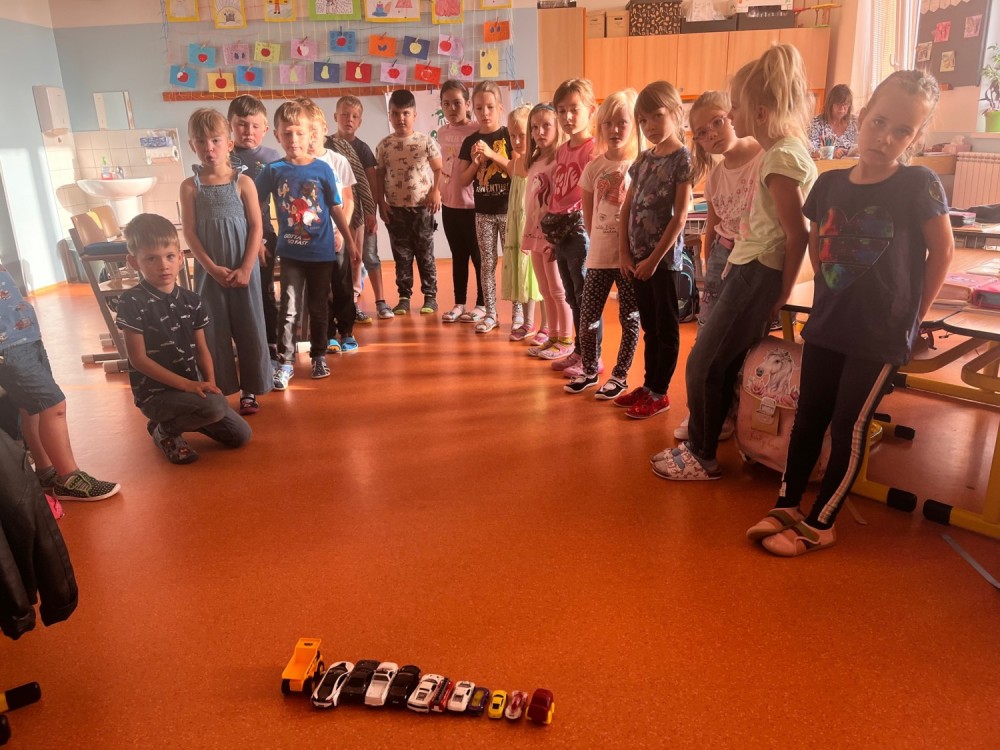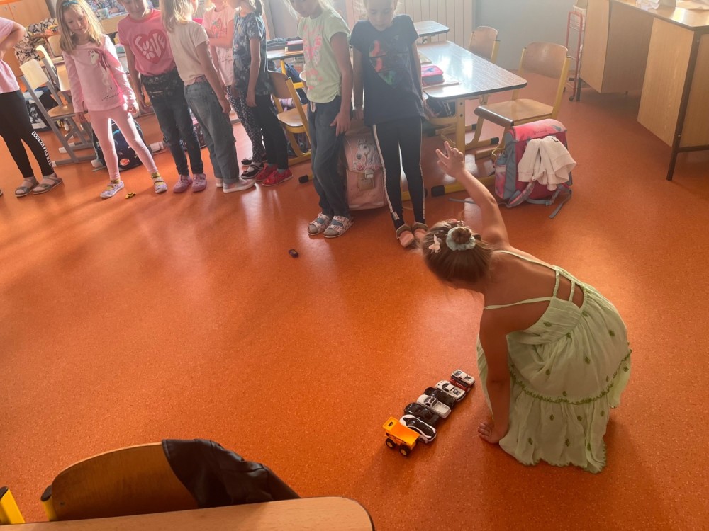 Před státním svátkem jsme si připomněli legendu o sv. Václavu, kterého jsme si vyrobili v pracovních činnostech. A do matematiky jsme si měli přinést autíčko! Na to jsme se těšili - ale místo hraní jsme je řadili podle velikosti a zjišťovali, které přijede nejdál či nejblíž a v jakém pořadí. Matematika zkrátka může být i zábava :-).