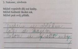 Nejvyšší metou byla tvorba vlastního textu, který obsahuje signální slova. Práce některých dětí jsou skvělé, proto se o radost z prací chceme s vámi podělit.