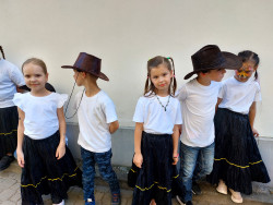 S velkým nadšením z kostýmů jsme dva měsíce předem začínali nácvik tance a s velkým nadšením jsme si užili také samotné finální vystoupení. Rodiče nás chválili, kdo nenatáčel, ten v rytmu tleskal, aby nás podpořil. Moc nám to pomohlo, děkujeme.