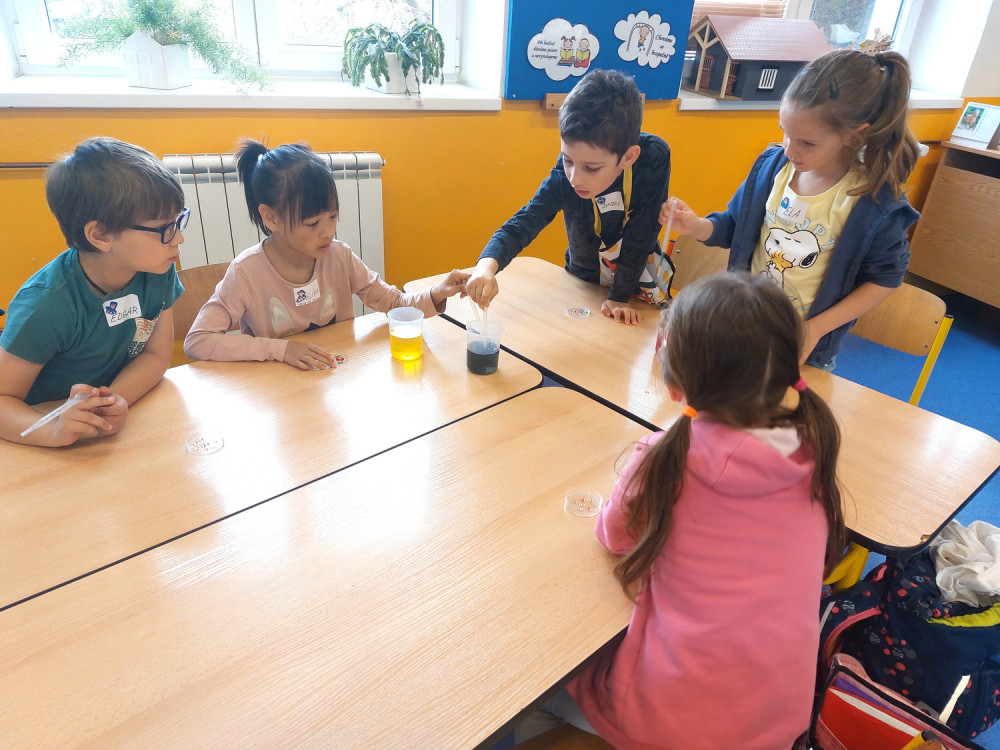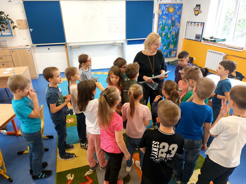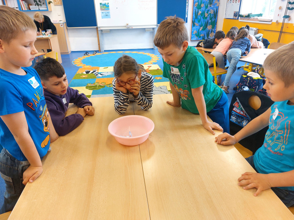A teď jsme si mohli na praktických cvičeních ověřit její další vlastnosti. Pracovali jsme se skupenstvím, vzlínavostí, hustotou a povrchovým napětím vody. Některá zjištění nás docela překvapila, a tak se těšíme na další setkání, kdy budeme „objevovat svět“.