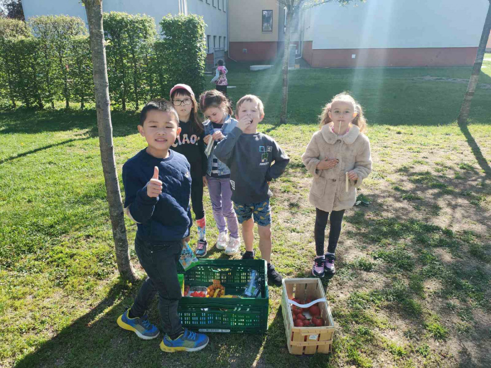 12. 4. 2024 V rámci projektu Ovoce do škol jsme dostali společně bedýnku rajčat na ochutnání. Využili jsme pěkného jarního počasí a svačinku si vzali ven. 16 / 4 / 2024 IB