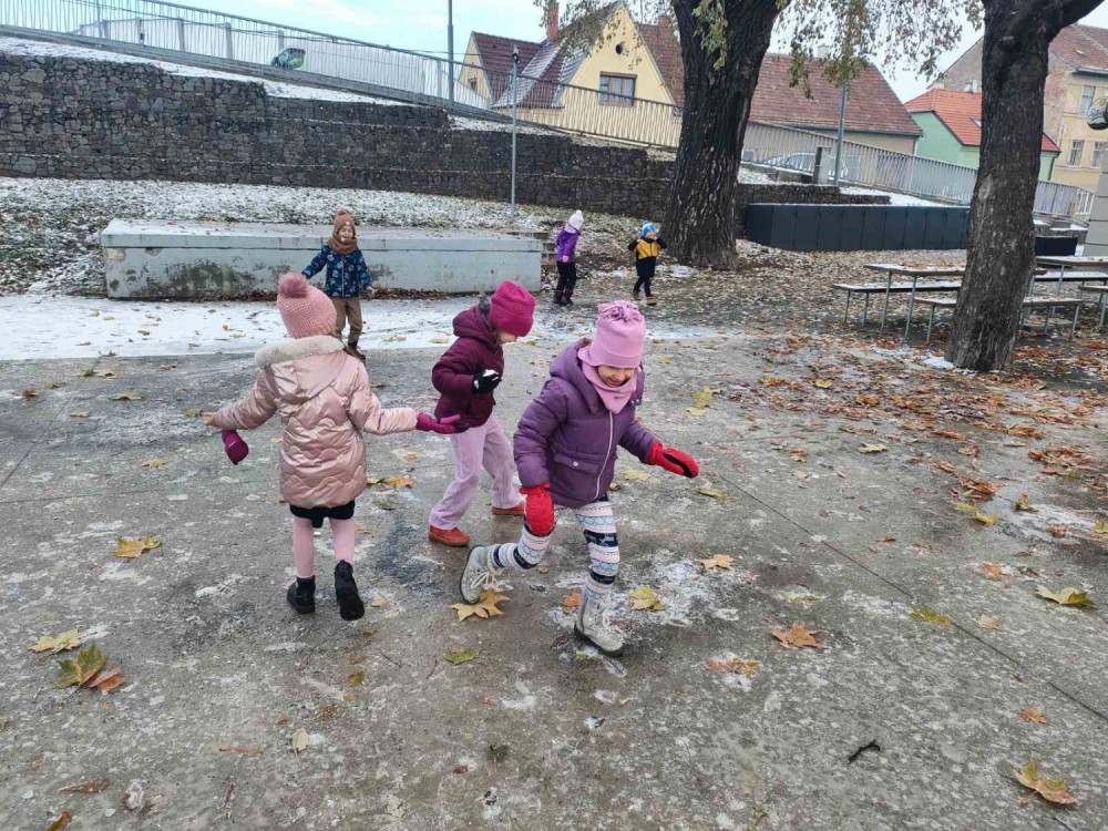 30. 11. 2023 Využili jsme prvního sněhu a mrazu na hrátky venku. Honičky ve sněhu, klouzání a tanec na ledě nás moc bavily. 1 / 12 / 2023 IB