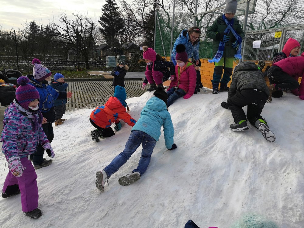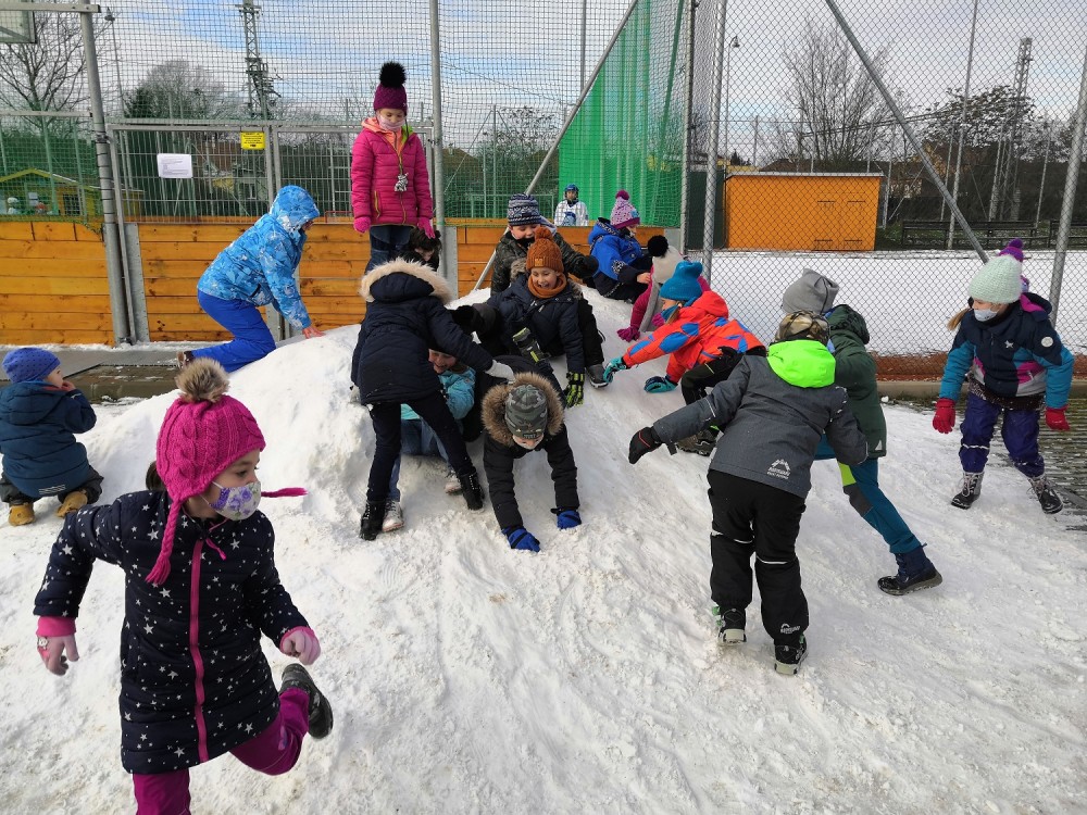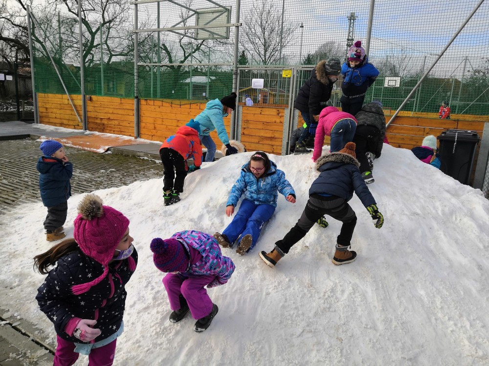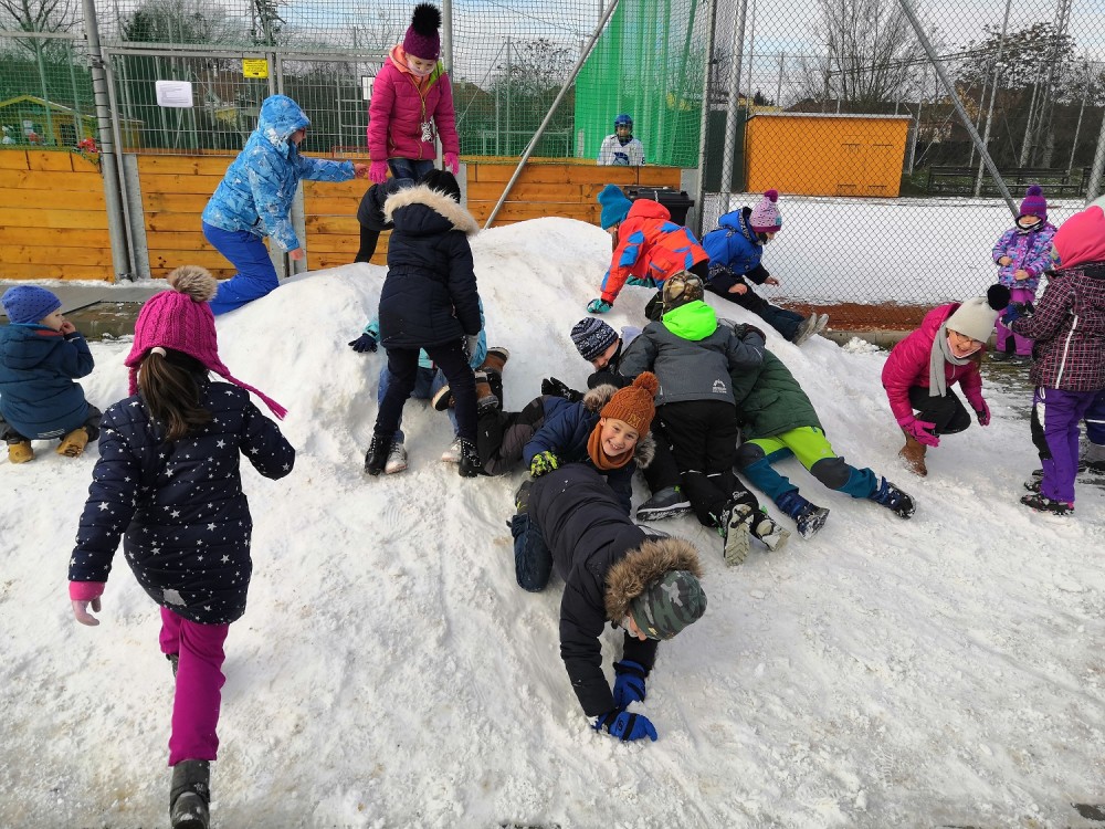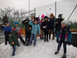 V rámci pátečního tělocviku jsme se vydali na jediný dostupný sníh v Modřicích. Na "modřické sjezdovce" jsme strávili bezva hodinu tělesné výchovy. Jsme rádi, že pan správce vydržel naši obrovskou radost doprovázenou ječením, křičením, pištěním, protože my jsme byli moc spokojení :-).