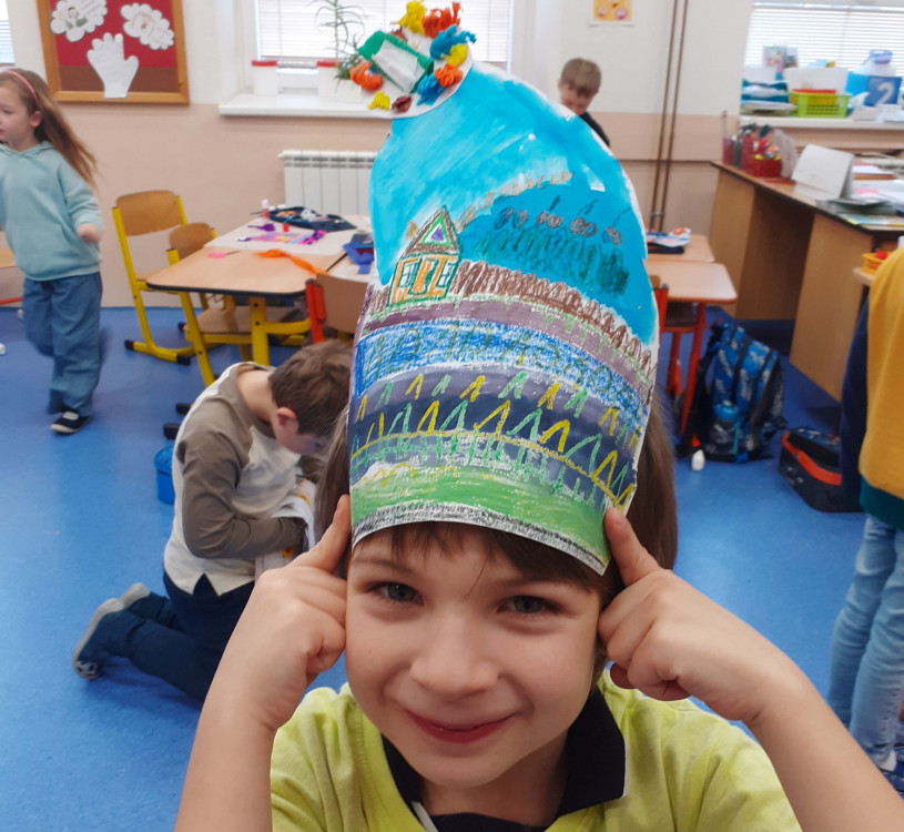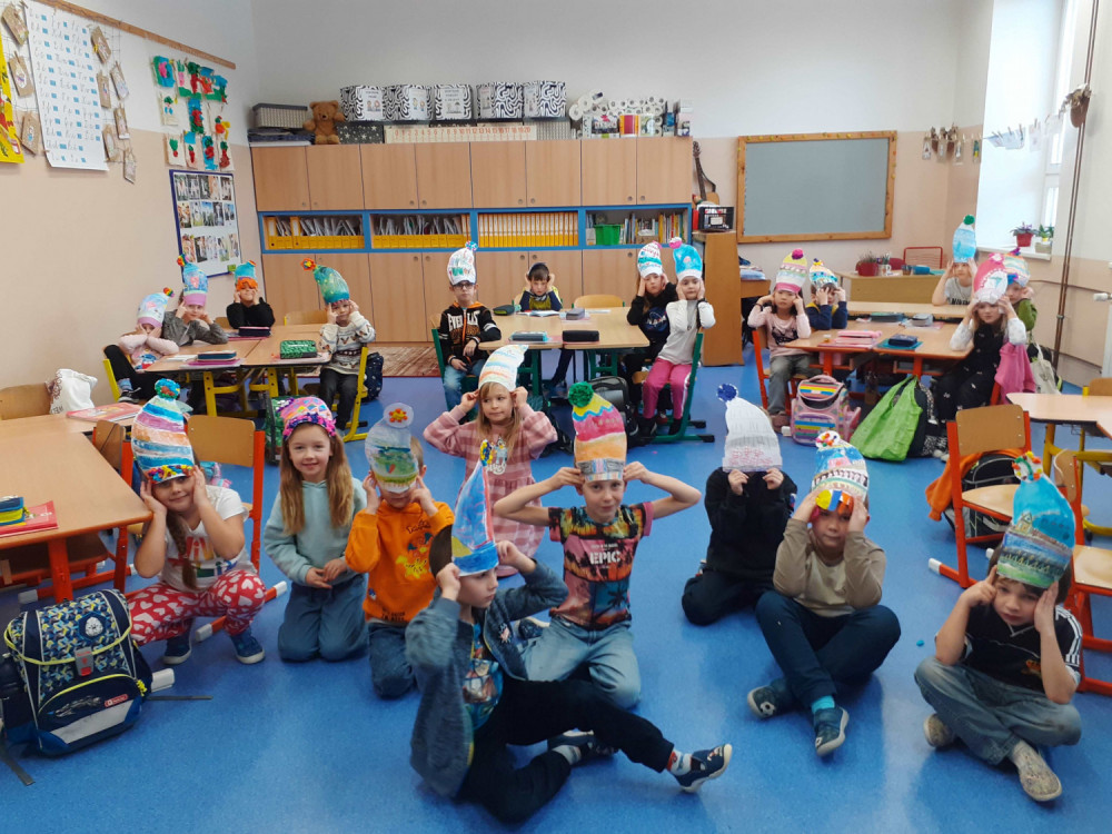 16. 1. 2025 Venku nasněžilo a my jsme si vyrobili pořádné teplé čepice. Zima může pokračovat. 16 / 1 / 2025 HP