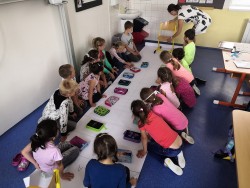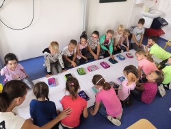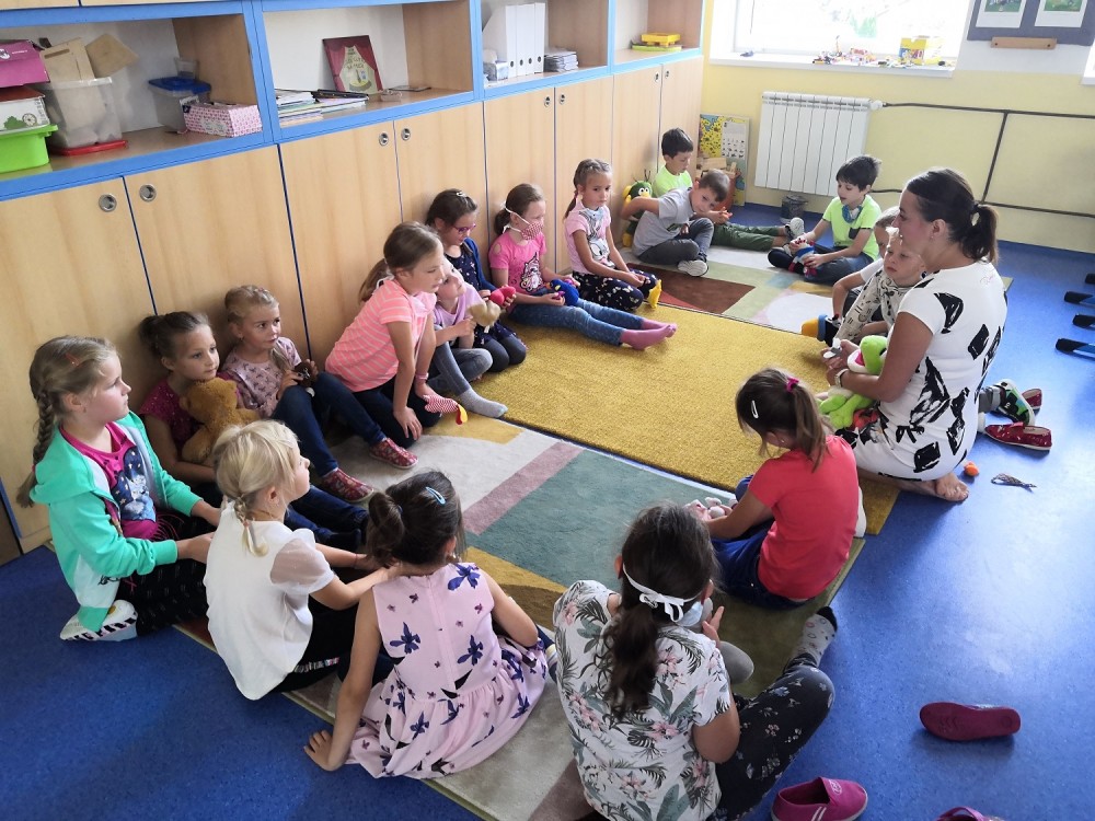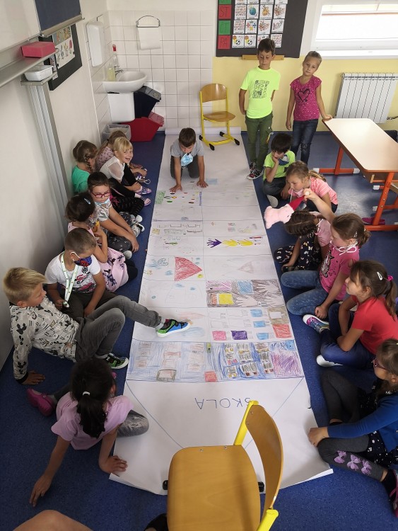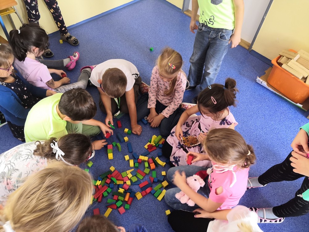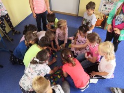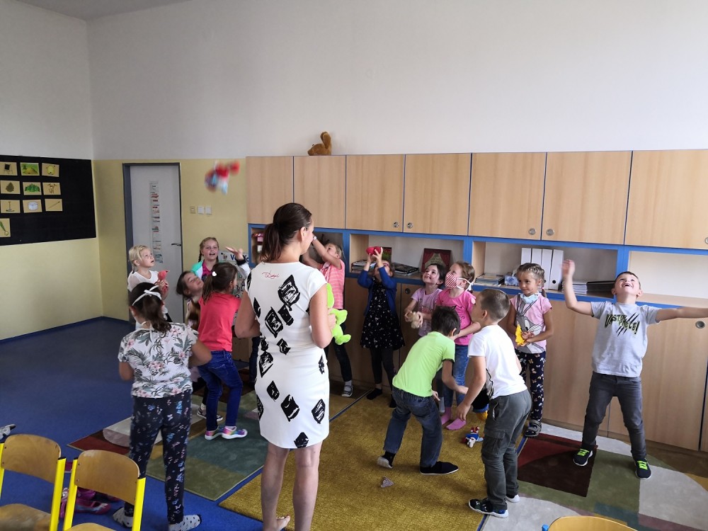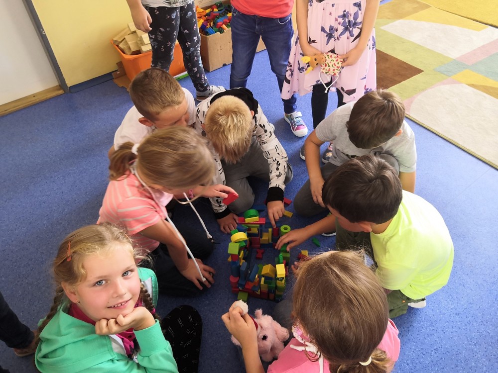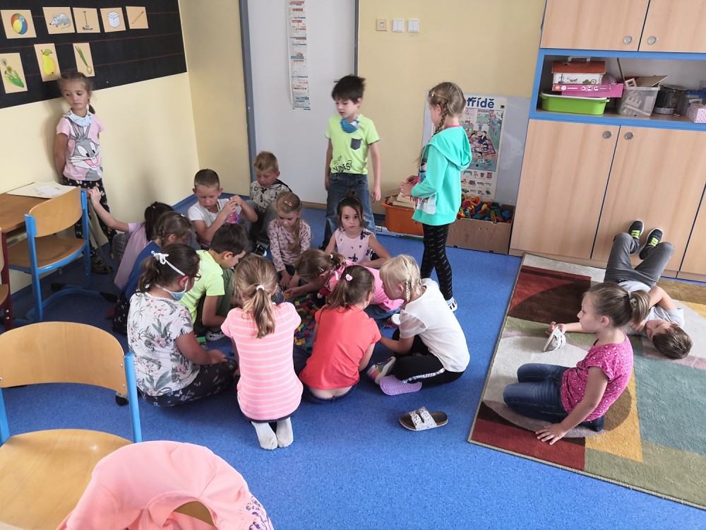 Druhý týden v září se s námi do třídy přišla seznámit paní psycholožka Mgr. Jeanette Vrtková. Připravila si pro děti zajímavý a zábavný adaptační program. Děti se blíže seznámily se svými spolužáky, připomněly si nová jména. Poznaly mouchu radost, smutek, naštvání a na velký papír si pak každý namaloval, co by ve škole chtěl mít. Největší výzvou se na závěr stala stavba hradu z kostek. Dětí moc a kostek málo, ale i tam si nakonec poradily! :-)