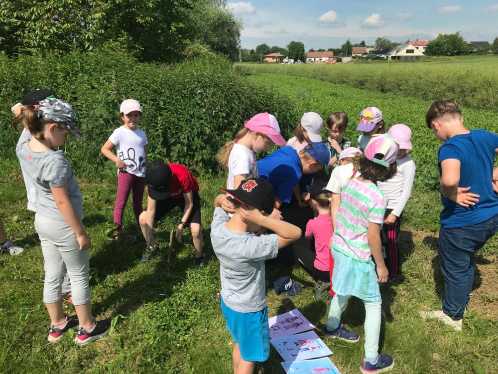 Děti z 1.C celý rok pilně pracovaly na tom, aby pomohly naší třídní sovičce. Na začátku roku byla celý holá a nyní se již pyšní krásným peřím, které jí děti "nakupovaly" za razítka získaná v pracovních sešitech. Sovička jim na oplátku prozradila cestu k pokladu. Ten našly u místního rybníka, ale nebylo to vůbec jednoduché - musely nejprve projít stezku "Cestu kolem světa" a zapamatovat si čísla, protože poklad byl ukryt v zakódovaném kufru. Ten se jim podařilo po pár pokusech zdolat a už se mohly těšit z opravdu štědrého pokladu.