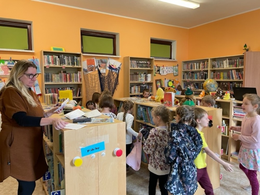 V úterý 10.10. jsme se vypravili poprvé do místní knihovny. Paní knihovnice děti seznámila s provozem knihovny, nachystala nové průkazky, které všichni ihned využili - vybrali si a zapůjčili své první knížky.