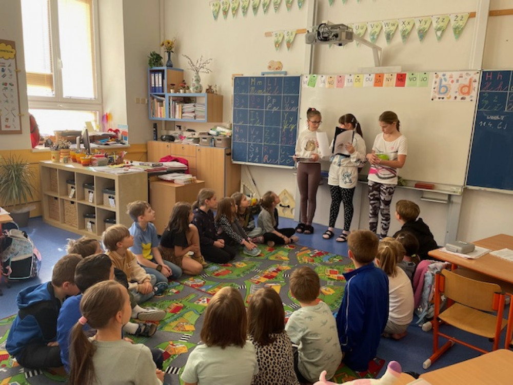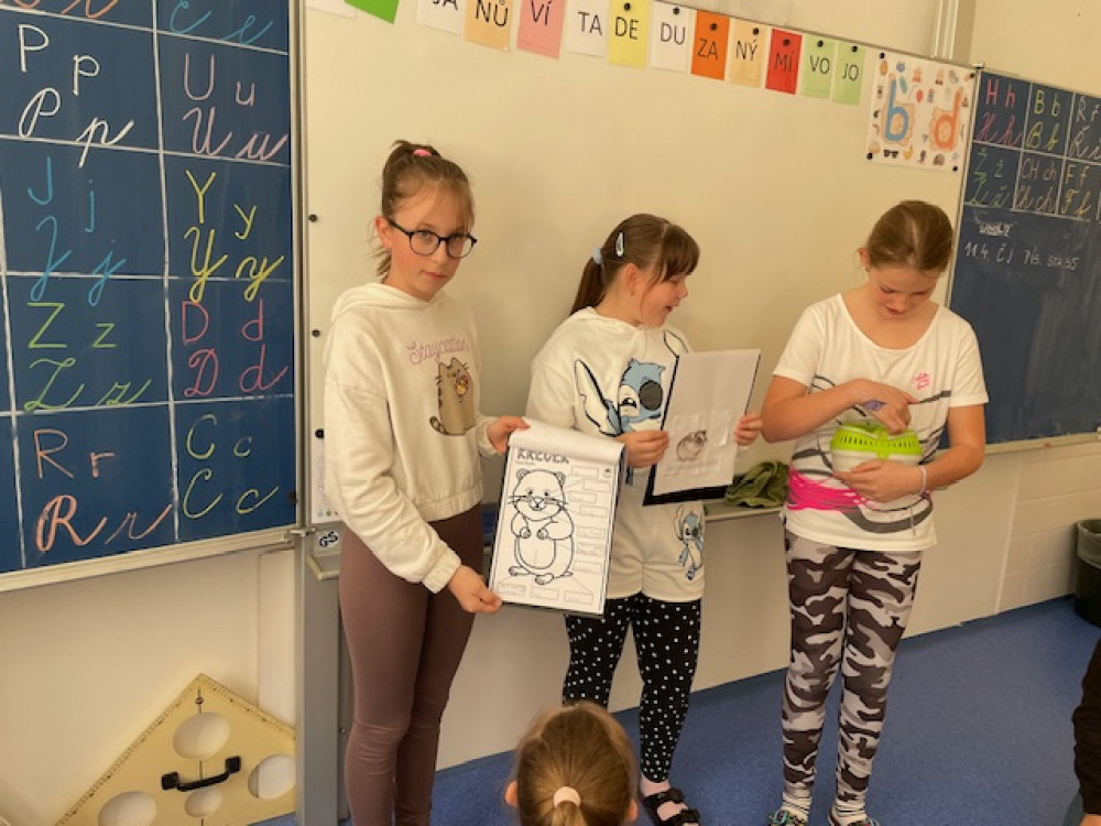 12. 4. 2024 V pátek 12. 4. nás navštívily děti z 5. A a seznámily nás se zajímavými informacemi ze života křečků. Největší úspěch měl ale živý křeček Ňufík, kterého si děti mohly prohlédnout. 17 / 4 / 2024 EN