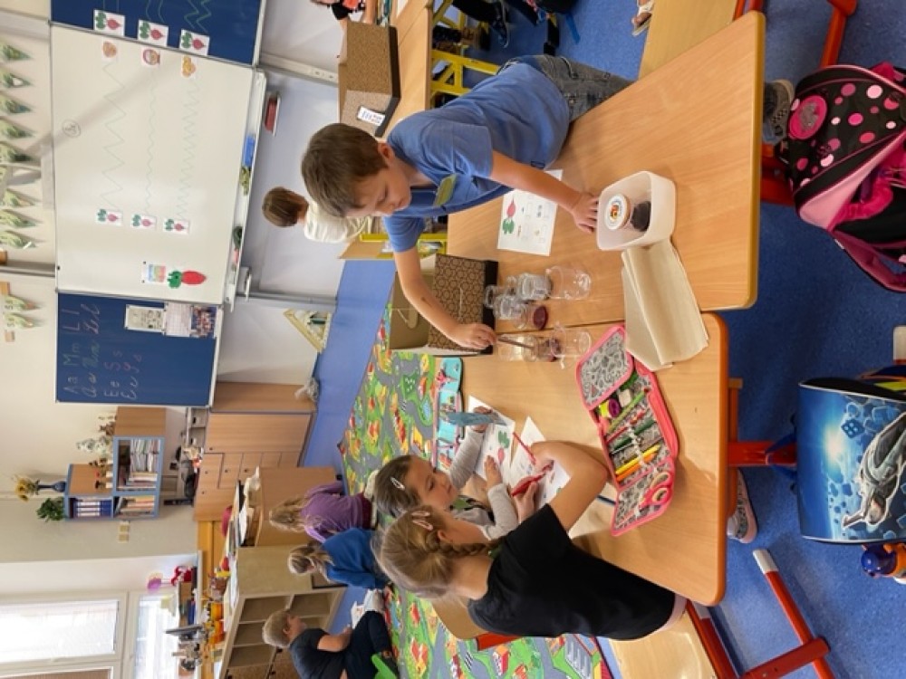Jelikož se ze všech dětí ve třídě rychle stali opravdoví žáci - prvňáci, mohli jsme se již tento týden vrhnout do programu Začít spolu... Jde o práci v centrech aktivit, která děti moc baví a zároveň je v různých oblastech rozvíjí. Prvním tématem byla pohádka O veliké řepě, která děti provází všemi centry.