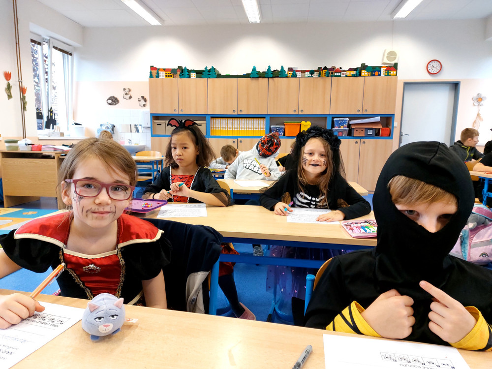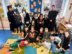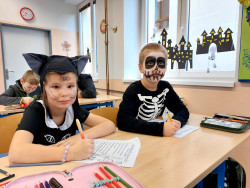 3. 11. 2025 Na tento den jsme se dlouho těšili, vyzdobili jsme třídu, vyráběli dekorace, vyprávěli si o Halloweenu v anglicky mluvících zemích i tradičním svátku zesnulých. Na stezce v okolí školy jsme plnili halloweenské úkoly. 17 / 11 / 2025 JSe