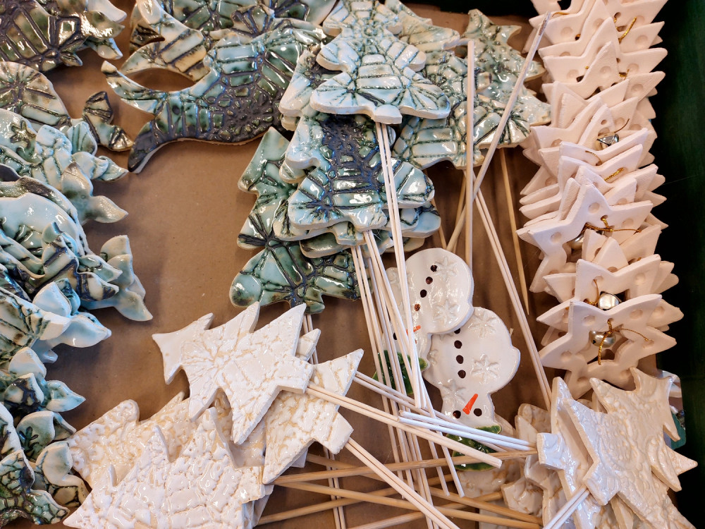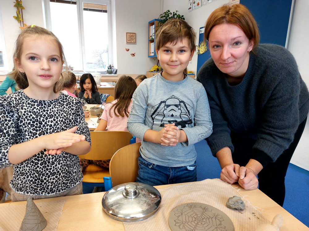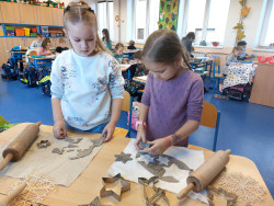 Práce s keramickou hlínou patří mezi naše oblíbené činnosti. Stejně jako v loňském roce jsme vyráběli vánoční andílky, rybičky, zvonečky a jiné dekorační předměty určené k prodeji na vánočním jarmarku nebo jako dárky pro obyvatele Pasivního bytového domu pro seniory v Modřicích, kam se chystáme, abychom vystoupili se svým vánočním programem.