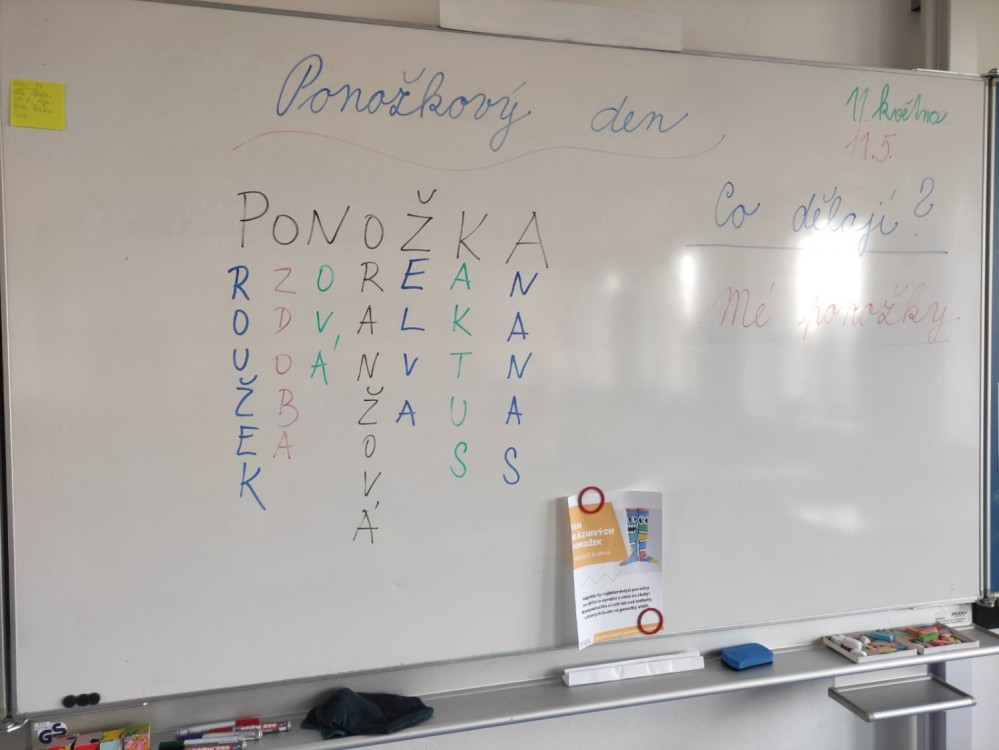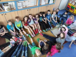 Na dnešní den pro nás Školní parlament přichystal akci Ponožkový den. V naší třídě se tento nápad ujal a všichni se podle svých možností zapojili. Kdo ponožky zrovna nenašel, tak si svůj návrh vyrobil. Pro hezkou vzpomínku nám naše ponožky zdobí chodbu. Během dne jsme si s nimi užili spoustu zábavy i trochu výuky. Děkujeme za nápad. 2.C.