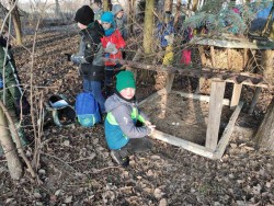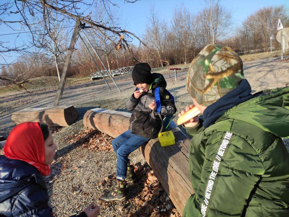 V rámci předvánočního těšení jsme vyrazili ven pátrat po místech, kde bychom mohli nechat něco dobrého pro zvířata v zimě. Děti si odhlasovaly pochod k Olympii a zpět. Po cestě jsme zachraňovali rybu pod ledem, dali tvrdé pečivo a ovoce ke krmelci v Přízřenicích. U Olympie jsme rozházeli semínka slunečnic po poli a nakrmili labutě v řece. Pro naše zdraví jsme ušli více než 6 km!