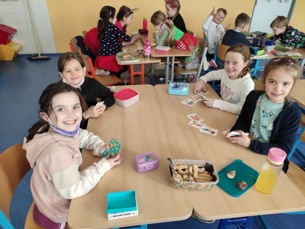 21. 12. 2021 Dnes jsme si moc užili vánoční besídku s tombolou. Po protažení v tělocviku jsme si nachystali občerstvení a losovali dárečky. Zvládli jsme si zahrát stolní hry nebo karty. Kdo chtěl odpočívat, mohl u vánoční ovečky Shaun. 21 / 12 / 2021 IB