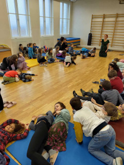 Navštívilo nás divadlo DIP se třemi příběhy. Paní principálka dětem vyprávěla o vodní víle a o tom, jak se zrodila zima, proč bychom měli o Vánocích myslet na druhé, a o vánoční hvězdě, kterou nosíme všichni v srdci. Děti zpívaly a aktivně doprovázely vánoční příběhy.