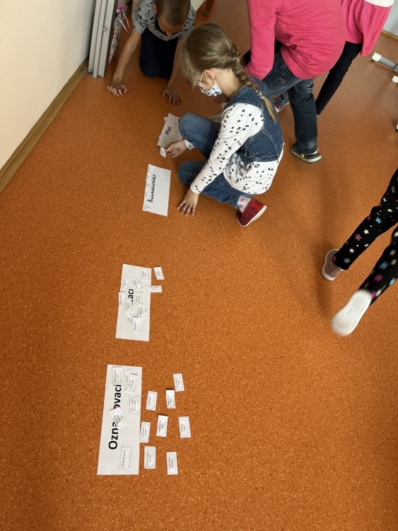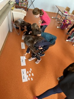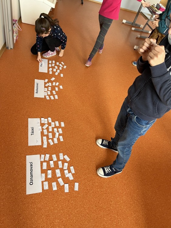 Dnes jsme si v hodině českého jazyka zahráli na ryby - pluli jsme v moři a z řeky přinášeli věty do správných proudů. Pracovali jsme pilně, docela jsem úkol zvládli. Některé věty jsme určili špatně, ale důležité je chybu najít a opravit.