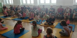 Zdravíme všechny maminky a tatínky! Po zdárném příjezdu do SVČ Ivančice jsme se ubytovali na pokojích a vyrazili ven na společný program. Počasí nám přeje, snad proto nám tak moc chutná dobré jídlo - k obědu sekaná s bramborovou kaší, na svačinku chléb s máslem či pomazánkou - někteří jich snědli až 5!, k večeři špagety. Někteří si chodili i 2x přidat! A teď před večerkou máme promítání - co jiného, než pohádku o Spongebobovi, když na toto téma celý náš adapťák je. No a potom už do postýlek, abychom byli čerství na zítřejší nabitý den :-).