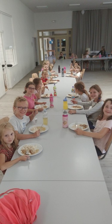 Zdravíme všechny! Druhý den našeho adaptačního pobytu utekl jako voda - počasí nám opět přálo, užili jsme si sluníčko, hry a hlavně zážitky s kamarády! Teď už si užíváme promítání pohádky jako v kině. No a pak už jen hupsnout do postýlky a spát, abychom byli ráno čerství na poslední společně strávené chvíle ☻!