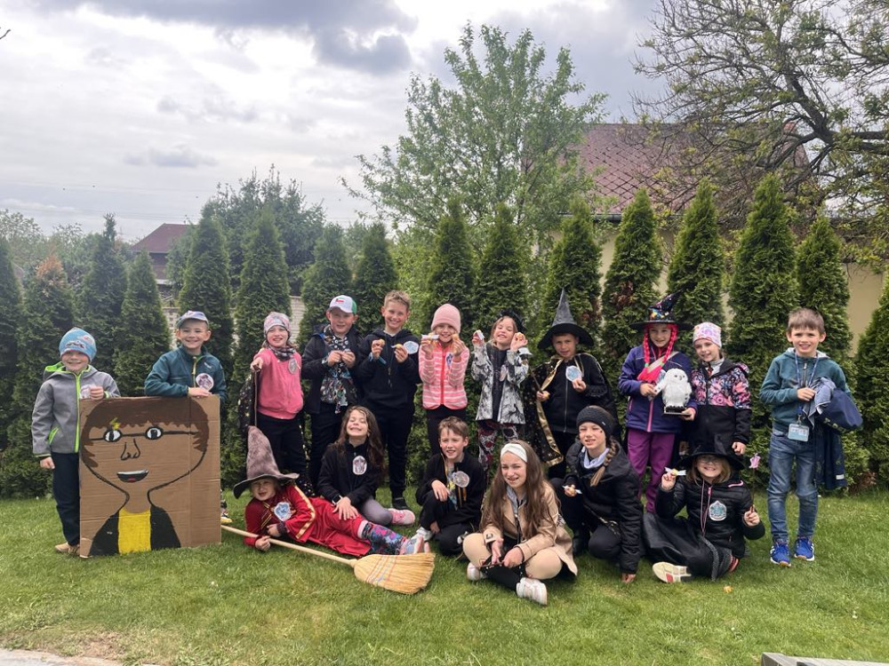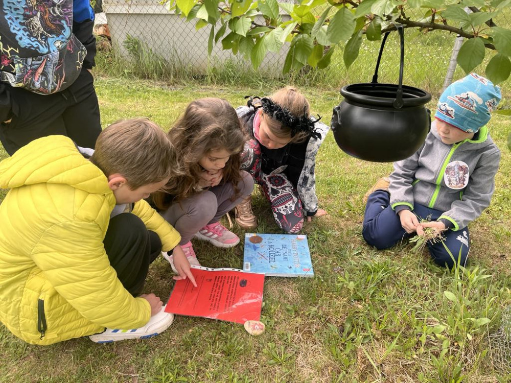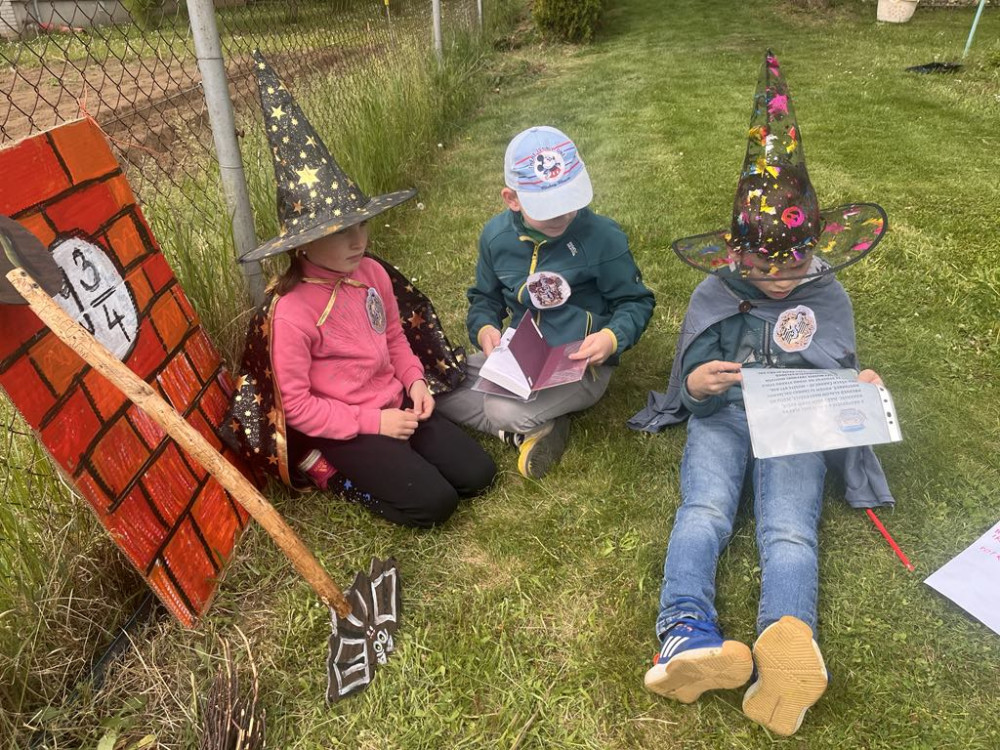 Dnes jsme se vydali na knihostezku po stopách Harryho Pottera. Připravili jsme čarodějné hůlky a v kostýmech a kloboucích jsme z modřického nástupiště devět a třičtvrtě na Komenského zavítali rovnou do Bradavic. Tam na nás čekala sova Hedvika i profesorka Minerva McGonagallová. Moudrý klobouk nás rozřadil do jednotlivých kolejích. Plnili jsme zapeklité úkoly v barvách Nebelvíru, Havraspáru, Mrzimoru nebo Zmijomezu. Zahráli jsme si i famfrpál, kouzelnický volejbal, namíchali kouzelný lektvar. Každý z kouzelníků byl odměněn klíčem od tajemné komnaty. Děkujeme profesorce Minervě McGonagallové za nádherný program!