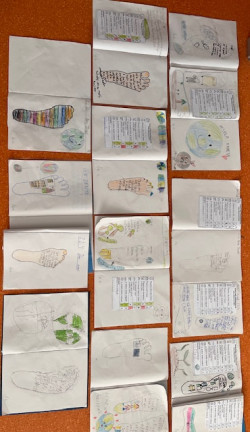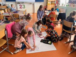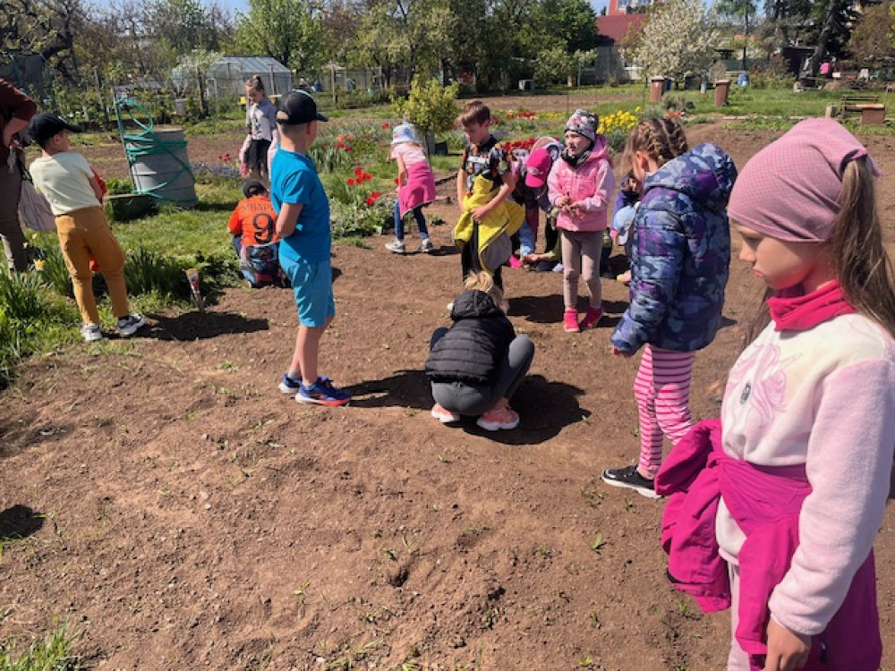 Letošní Den Země jsme si připomněli společnou četbou pohádky o planetě Zemi. Povídali jsme si o tom, jakou stopu na naší Zemi zanecháváme a vznikl tak pěkný kooperativní plakát. Nezapomněli jsme navštívit "naše" osázené záhonky a zkontrolovat, jak se daří naší vyseté zelenině.