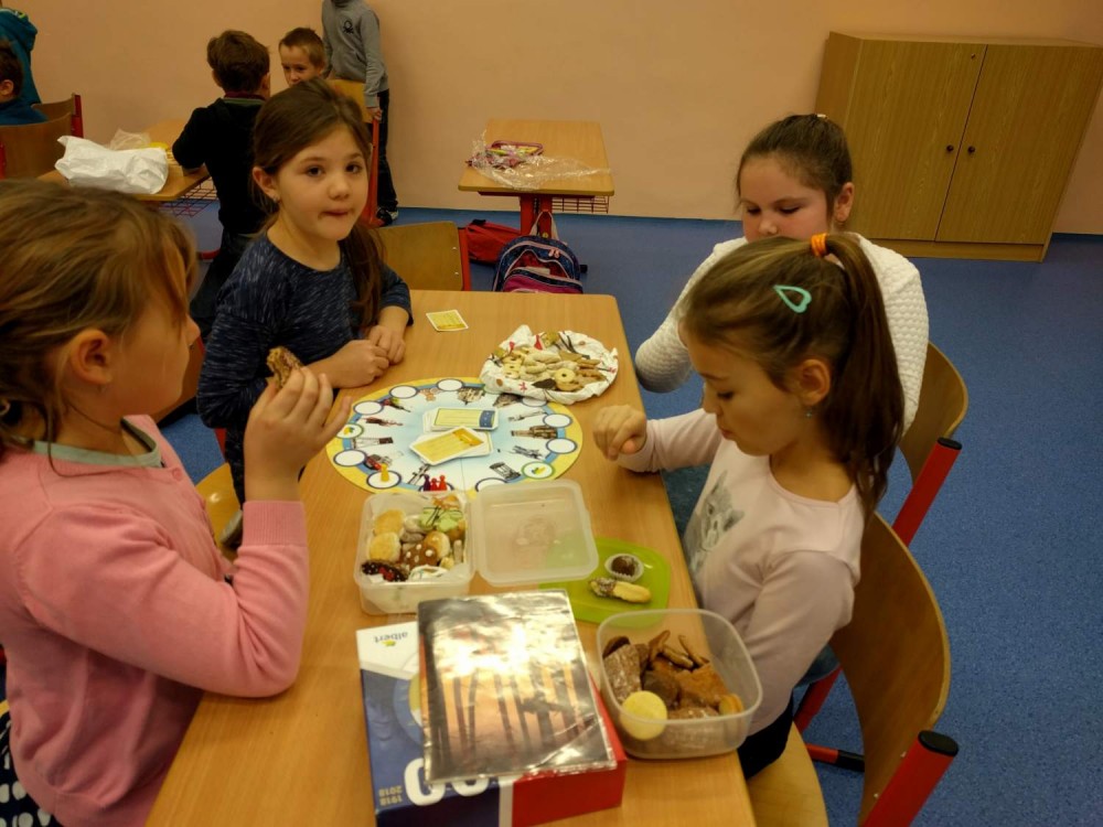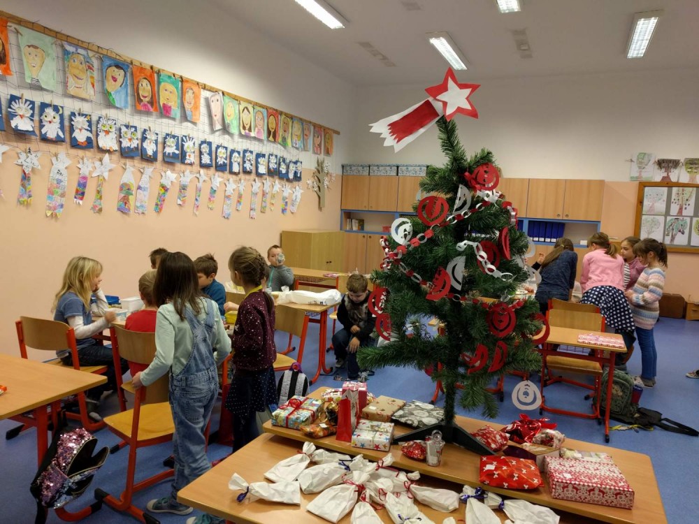 V předvánočním čase jsme si, aby nám to čekání rychleji ubíhalo, namalovali vánoční kapříky,každý den vybarvovali jedno políčko v našem adventním kalendáři-vánoční kometě,ozdobili jsme si vánoční stromeček vlastními ozdobami,vyrobili kapříkové vánoční přání a také vytvořili společné dílo, maxiomalovánku vánočního stromku.Ve čtvrtek jsme byli v "kině"-ve třídě jsme si pustili vánoční pohádku. Poslední školní den před prázdninami jsme si povídali, hráli hry, jedli cukroví a vyměnili si dárky, které jsme si losovali v tombole.Také jsme byli v "divadle"-starší spolužáci nám zahráli pohádku o strašidlech.Nakonec jsme si společně zazpívali koledy. Teď už se jenom těšíme, až zazvoní zvoneček...