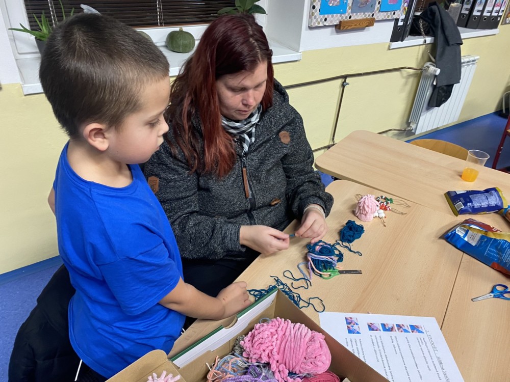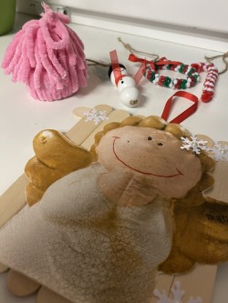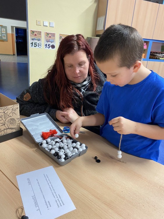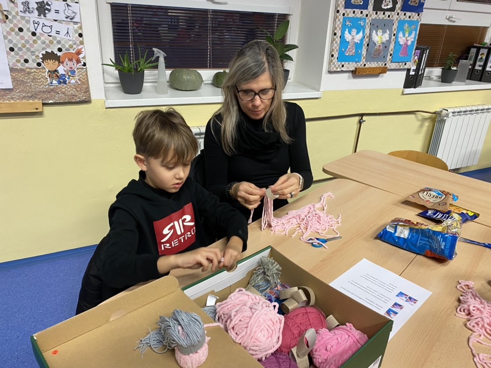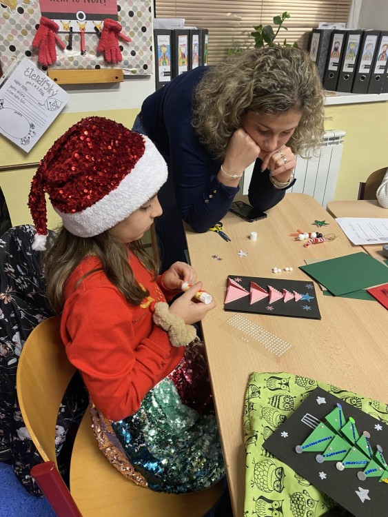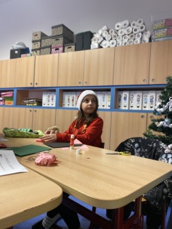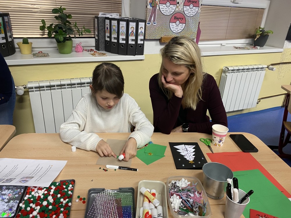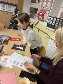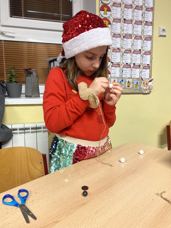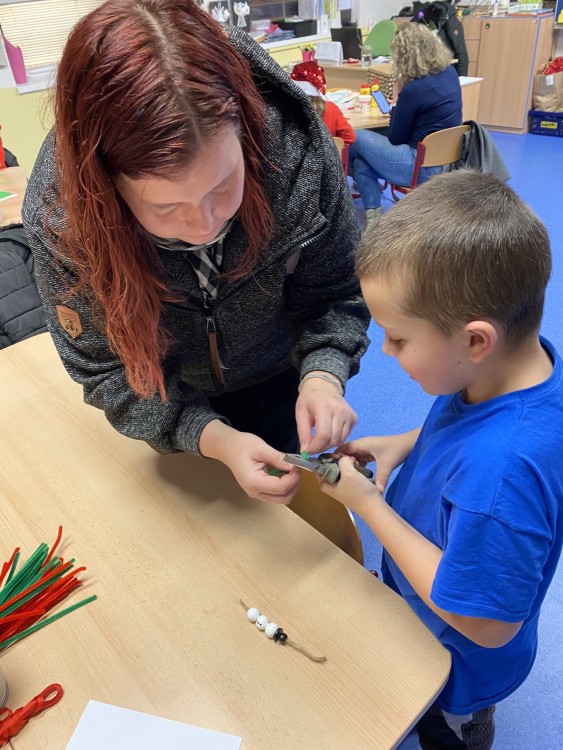 Letos pro nás paní učitelka připravila pět stanovišť, na kterých jsme pracovali s netradičními materiály či složitějšími postupy. Čekalo na nás uzlíkování skřítkovské čepičky, výroba vlastních ozdob z korálků a drátků, sněhuláka z dřevěných komponentů, vytvořili jsme si vánoční přání a vyzkoušeli ubrouskovou techniku na dřevěný podklad.