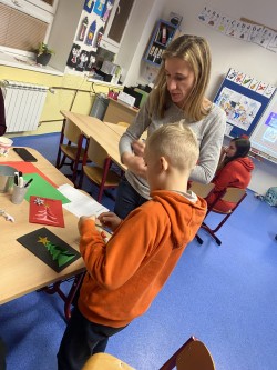 12.12.2023 se ve čtyři hodiny odpoledne třídou 2.A rozezněly tóny koled, což může v tento čas, krátce před Vánoci, znamenat jediné. Společné tvoření dětí a rodičů.