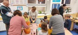 30. 10. 2023 Letošní příprava na Halloween probíhala ve formě odpoledních dílen, kde rodiče a děti společně dlabaly, vyřezávaly dýně. Děti spíše dlabaly a rodiče řezaly. Kreativita rodičů neznala mezí. K práci jsme měli i drobné občerstvení. 18 / 12 / 2023 MPa