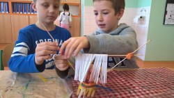 Obdobně proběhla i hodina ve které žáci z plastelíny, špejlí a plastových míchátek vytvořili zajímavé stavby. Inspirací nám byla stavba hotelu a televizního vysílače na hoře Ještěd, ale i samotná Eiffelovka.
