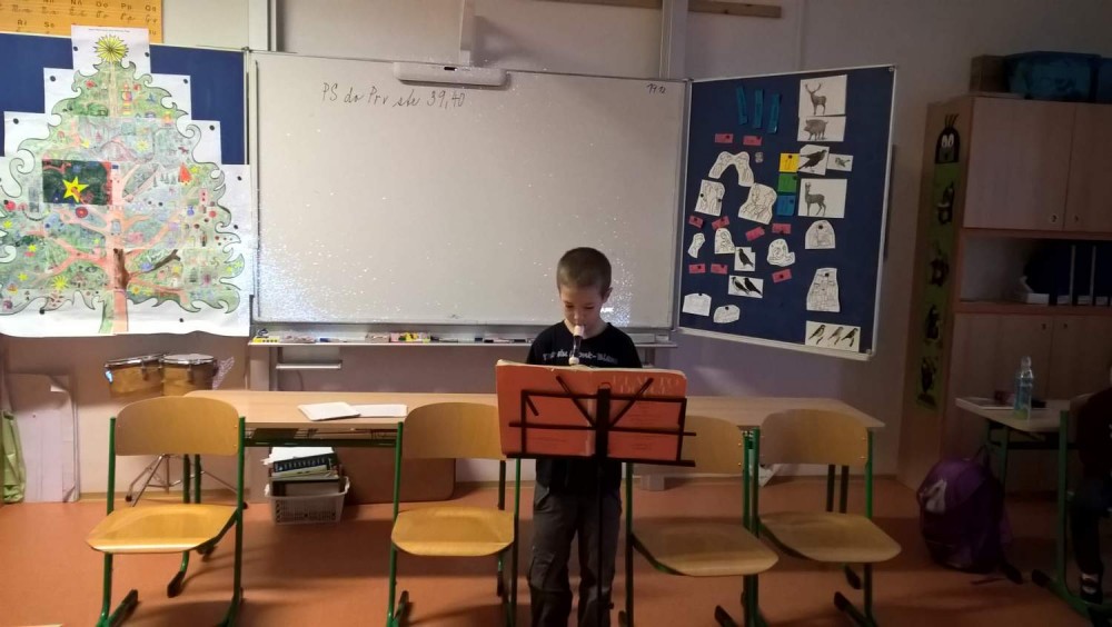 Prosinec v II.B se nesl v duchu vánočního zklidnění a očekávání příchodu Ježíška. Tak jako jiné třídy nás navštívila paní Klangová, aby nás poetických způsobem seznámila s událostmi okolo narození Ježíše Krista.
